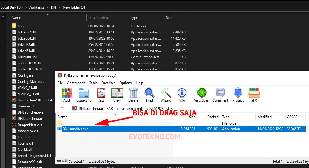 - Habis itu ekstrak file DNLauncher.rar, disana terdapat backup file DNLauncher.exe