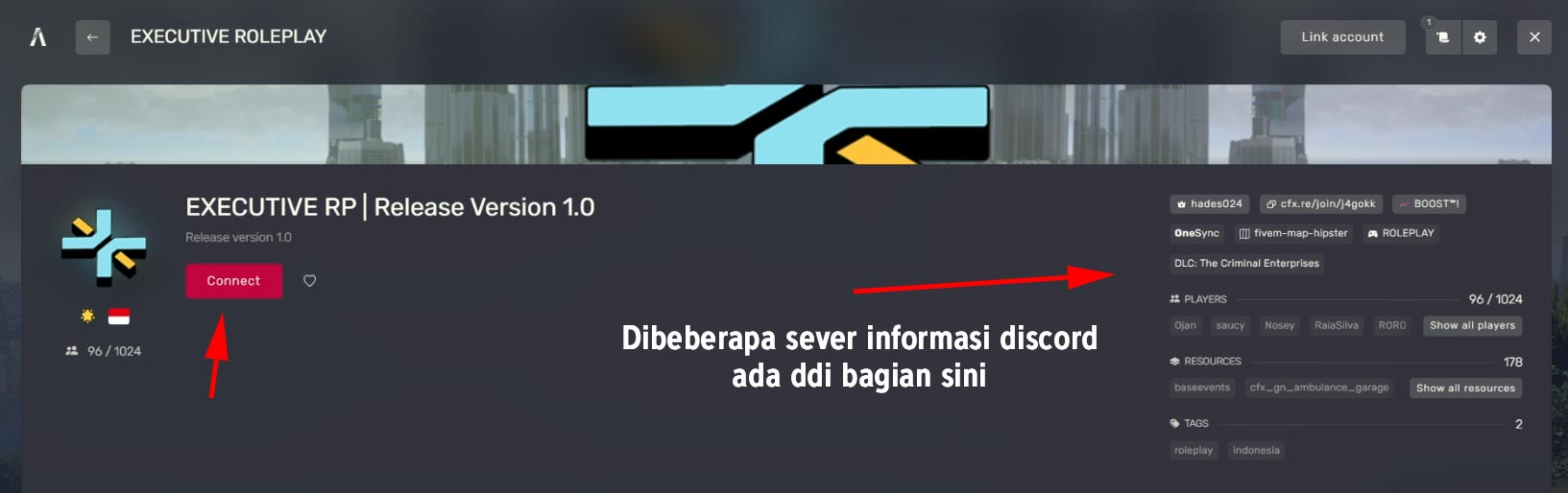 Nah mungkin ada yang bertanya, dimana supaya tau domain/IP-nya? domain direct connect bisa Anda dapatkan di server Discord. (Inilah pentingnya discord)