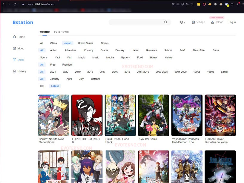 Bilibili.tv layanan streaming legal dari Tiongkok. Tak hanya anime tersedia juga serial TV.