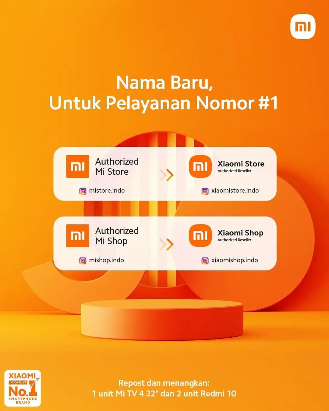 Dikutip dari Suara.com “Xiaomi pada Sabtu (2/10/2021) mengumumkan pihaknya telah mengubah nama-nama toko resminya di Indonesia untuk mengikuti kebijakan dari pusat perusahaan di Tiongkok.”