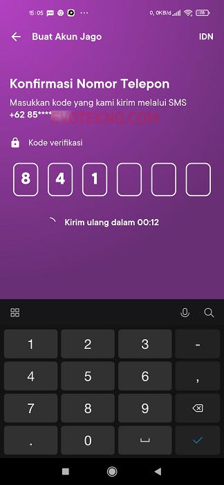 - Langkah kedua, isi kode verifikasi yang masuk ke SMS.