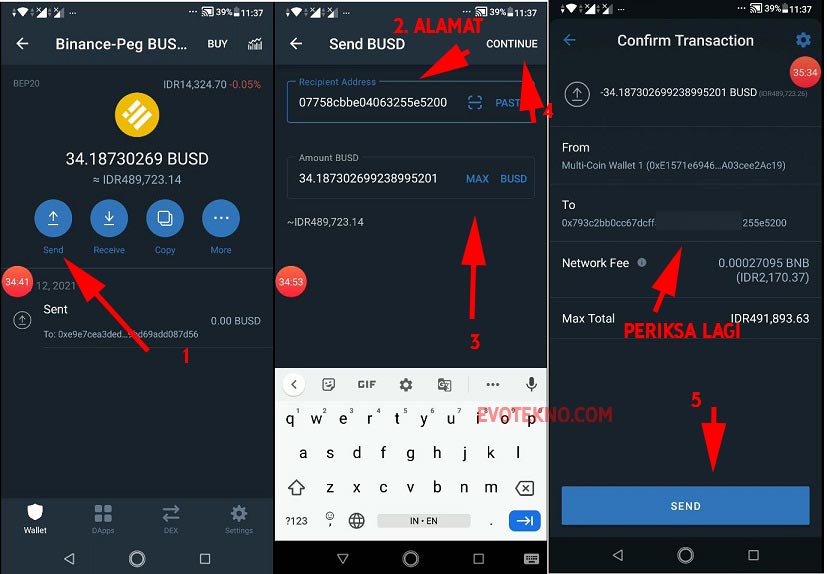 Langkah 2: Proses Transfer di Trust Wallet