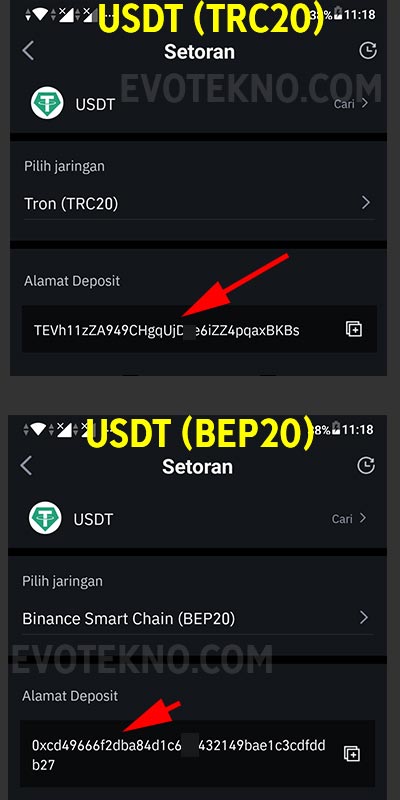 - Contoh lainnya USDT juga mendukung jaringan BEP20 dan TRC-20