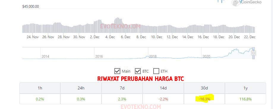 Saya ambil contoh satu yakni BTC saja, karna mau koin/token apapun non-stabil ini sangat fluktuatif; BTC dalam 1 bulan bisa naik belasan persen, tapi turunnya juga bisa belasan juga, bahkan perubahannya bisa puluhan persen juga lho hahah