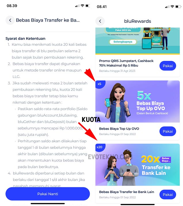 - Disana kuota gratis transaksi masih banyak, walaupun saldo kalian hanya 500 ribu.