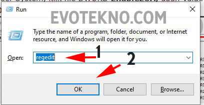 1. Buka Registry Editor, dengan cara tekan Tombol Windows + R, lalu masukan perintah “regedit