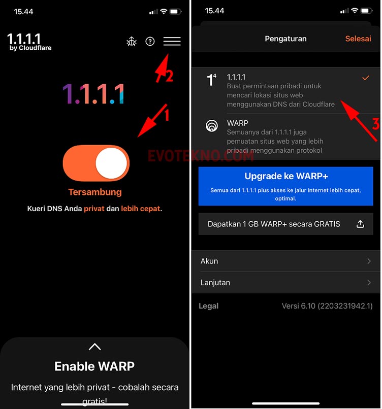 - Pertama aktifkan saja aplikasi Clouflare tersebut