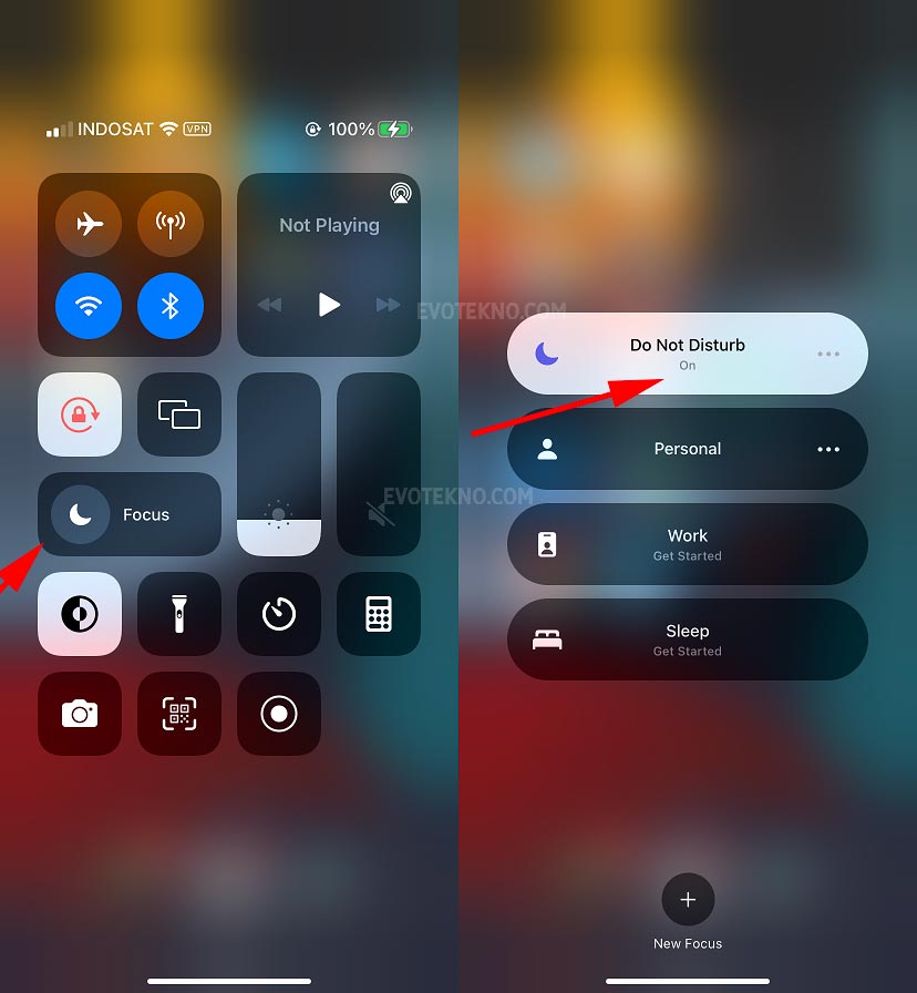 - Lalu aktifkan “Do Not Disturb” menjadi ‘On“, sampai ada logo bulan sabit yang tandanya fitur tersebut sedang aktif.