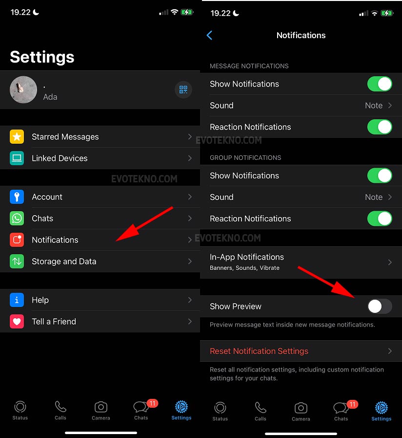 - Menyembunyikan isi chat yang terlihat ketika notifikasinya muncul?