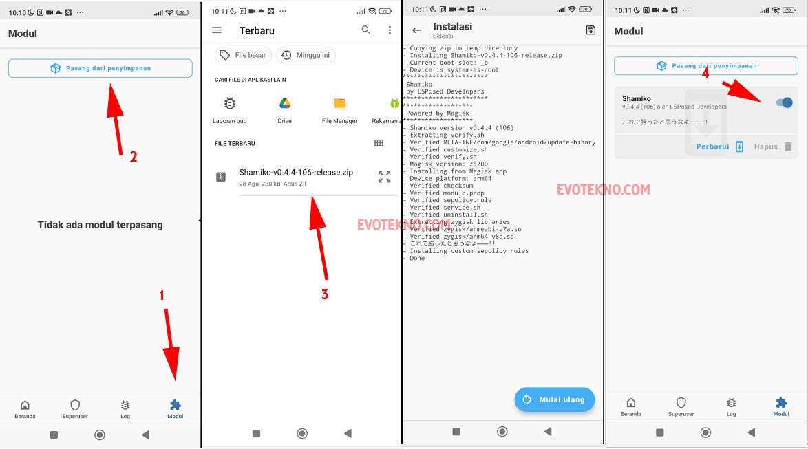 - Terakhir klik file ShamikoV0.4.4-106-release.zip nantinya akan otomatis memasang modul tersebut, setelah itu pastikan modul Shamiko aktif.