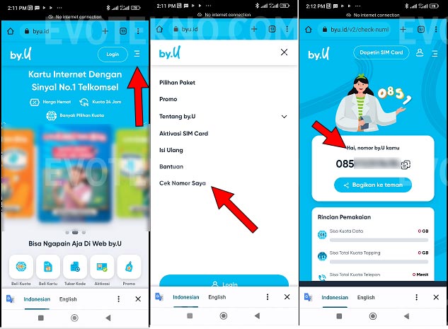- Terakhir klik menu navigasi, lalu pilih menu “Cek Nomor Saya“. Nantinya secara otomatis secara otomatis web akan memeriksa nomor dari kartu SIM Anda dan dialihkan ke halaman baru.