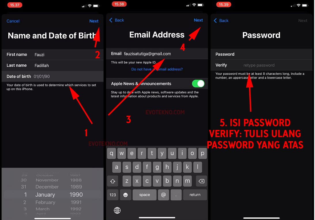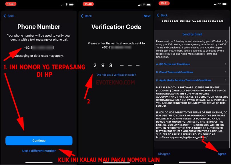 Pastikan e-mail dan no. telp yang digunakan, adalah e-mail dan no. telp utama dan yang sering Anda dipakai. Karna nomor telepon hangus, akan merugikan untuk akun iCloud Anda, apalagi kalau lupa password e-mail akan sangat rugi.