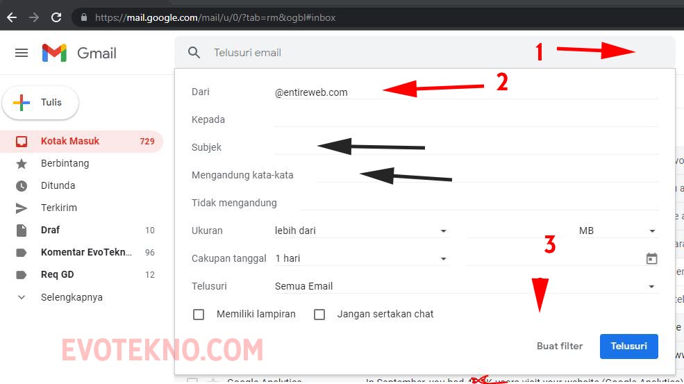 - Mengandung kata-kata: Filter berdasarkan kata-kata tertentu