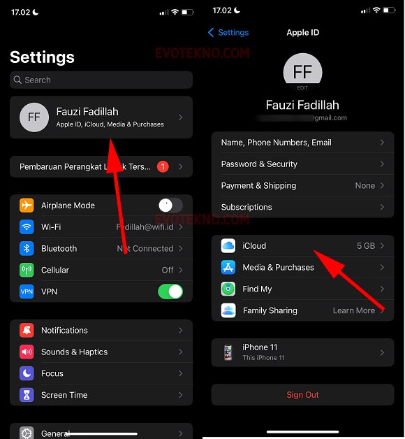 - Buka menu Apple ID, lalu buka pengaturan ‘iCloud‘