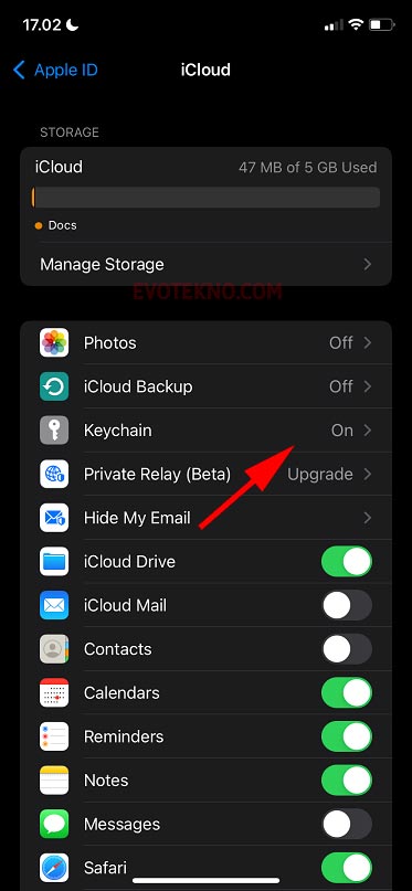 - Nah pastikan pada pengaturan Keychain sudah pada kondisi ‘on‘