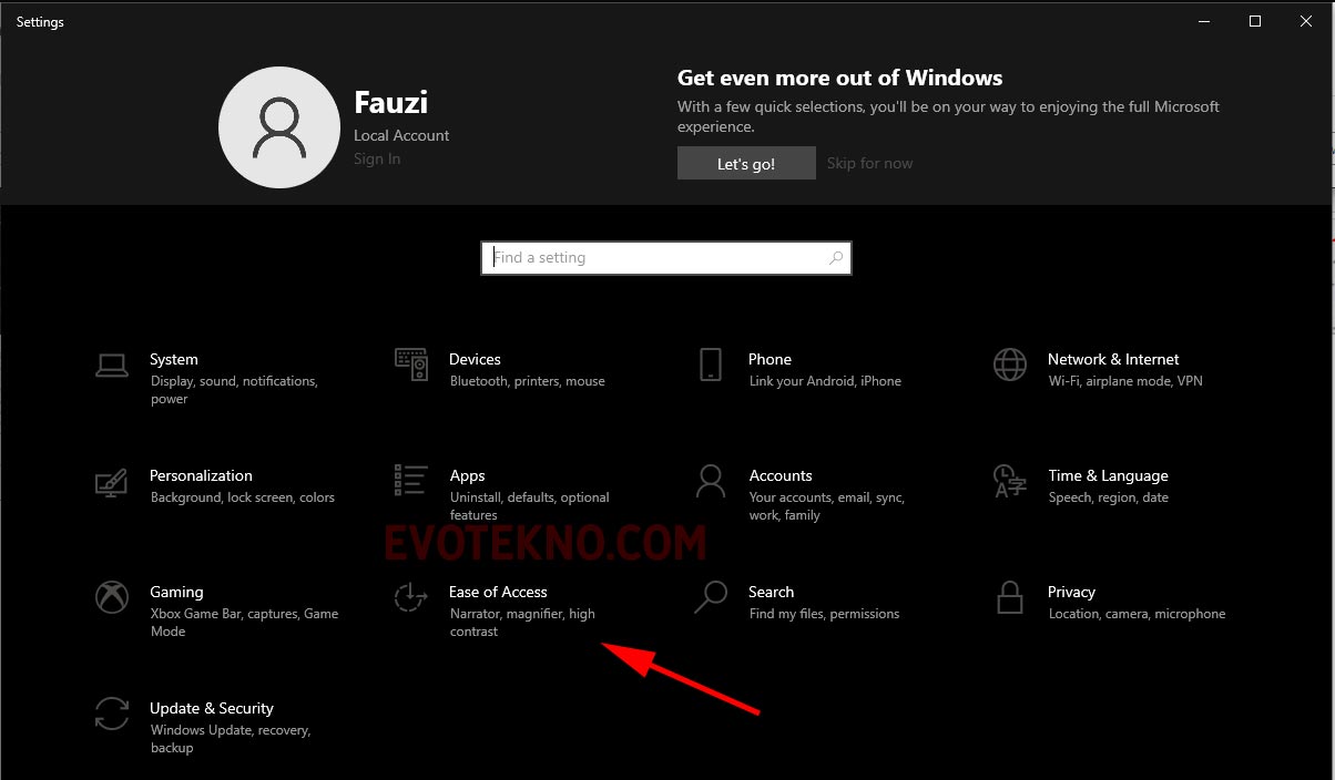 - Setelah masuk pengaturan, pilih “Ease of Access“