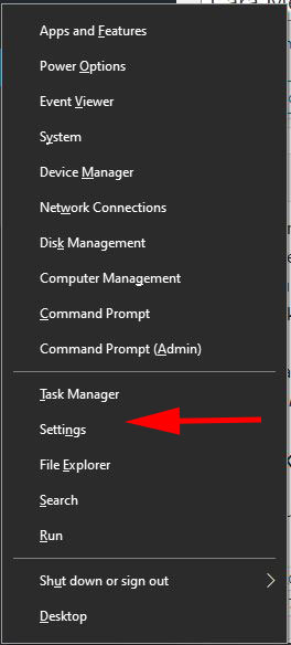 - Pertama buka pengaturan Windows, caranya klik kanan pada icon Windows + tombol X di keyboard lalu pilih “Settings“