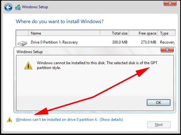 Begitupun sebaliknya jika tertulis pesan error “MBR” berarti bootable-nya harus MBR juga.