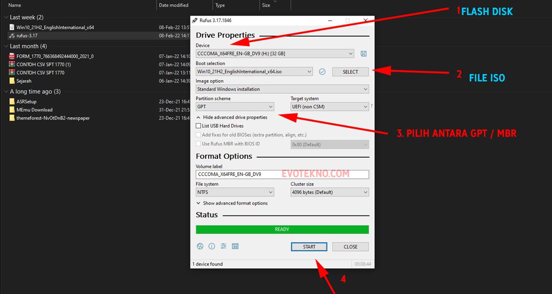 Nah, solusinya mudah. Cukup format kembali si flash disk, kemudian buat ulang bootable dengan memilih GPT sebagai skema partisinya.