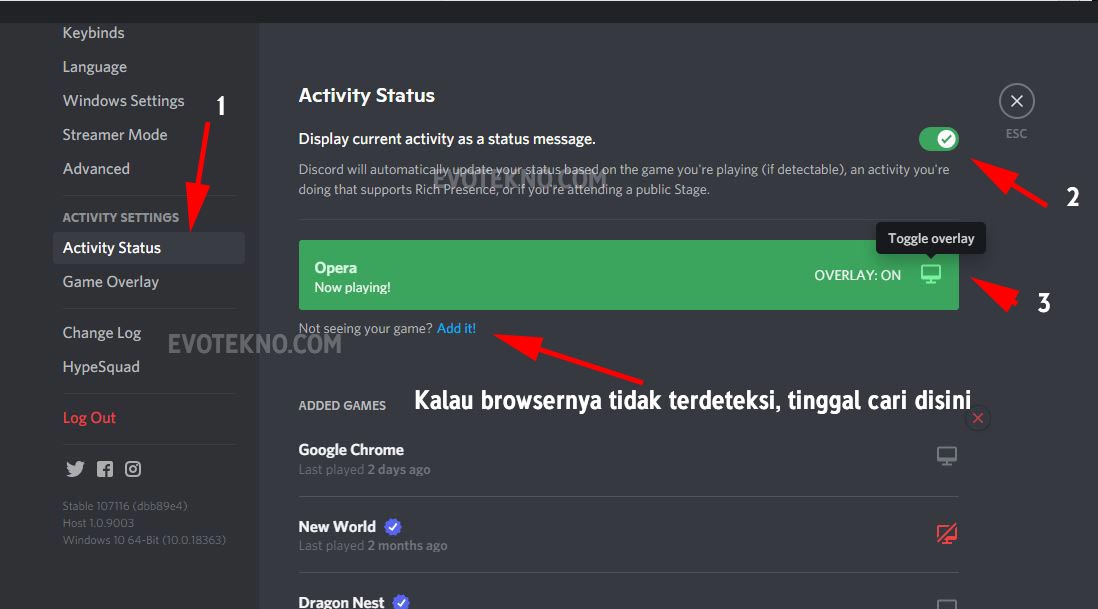 EvoTekno.com – Discord memiliki fitur Game Activity yang dimana bisa memperlihatkan game apa yang sedang mainkan. Anda juga dapat menambahkan aplikasi untuk ditampilkan pada game activity namun tidak semuanya bisa.