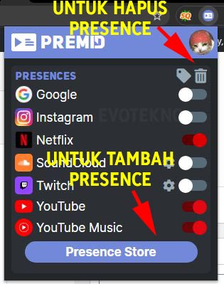 Secara default, presence atau situs web yang tersedia hanya ada YouTube, YouTube Music, Netflix, Zoom, Google Meet dan SoundCloud.