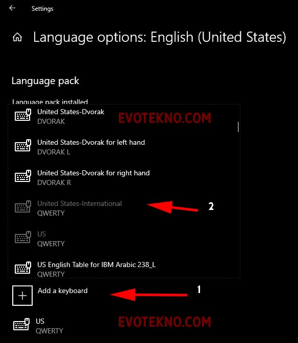 3. Selanjutnya klik “Add a keyboard” lalu tambahkan “United States-InternationalLanguage Settings - Add a keyboard - united states international - windows