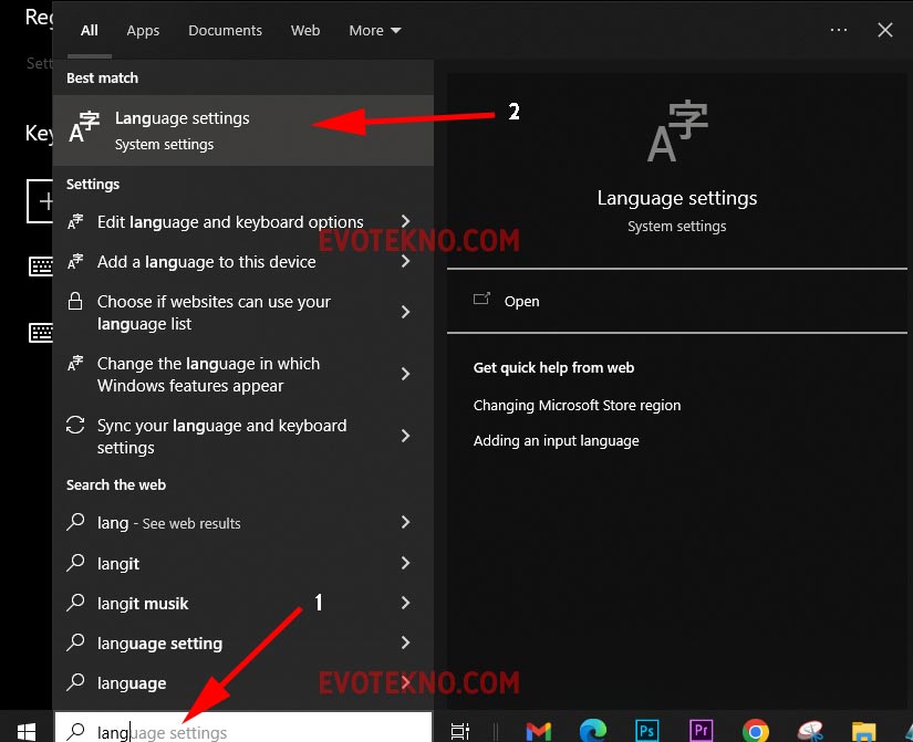 1. Untuk masuk ke pengaturan tersebut, pada Search Bar Windows cari pengaturan “Language settingsLanguage Settings - Windows 10