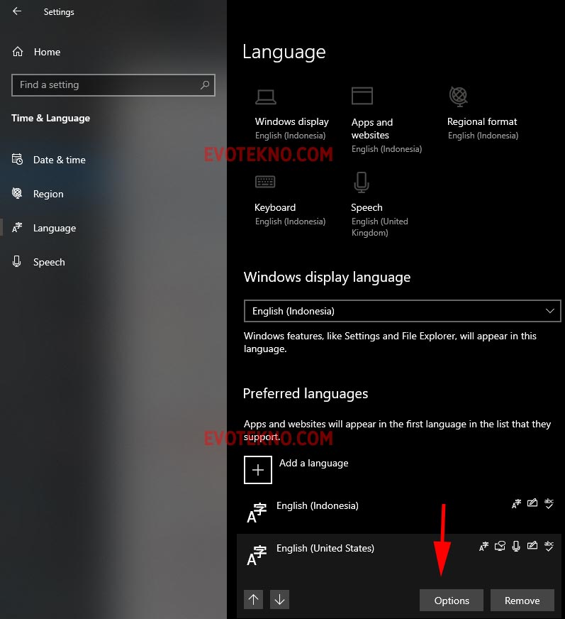 2. Disini saya sudah terpasang bahasa English (United State), lalu klik “Options