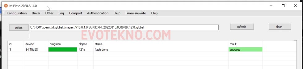 Jika sudah berhasil sampai tertulis “flash done”, “success” nantinya si HP akan reboot secara otomatis.