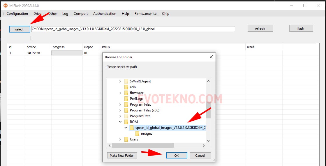 - Klik menu “Select” dan cari folder firmware yang Anda ekstrak tadi.
