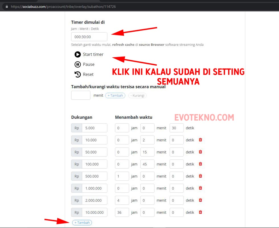 Jadi tantangannya itu, jika ada fans yang subscribe ataupun donasi, Durasi live streaming akan bertambah sesuai dengan pengaturan yang Anda berikan.