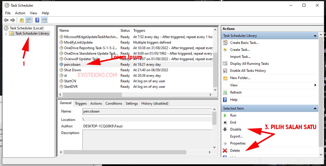 Yang atas kan cara membuat task, nah jika Anda ingin jeda atau menghapus task tersebut, bisa ikuti tutorial bawah ini