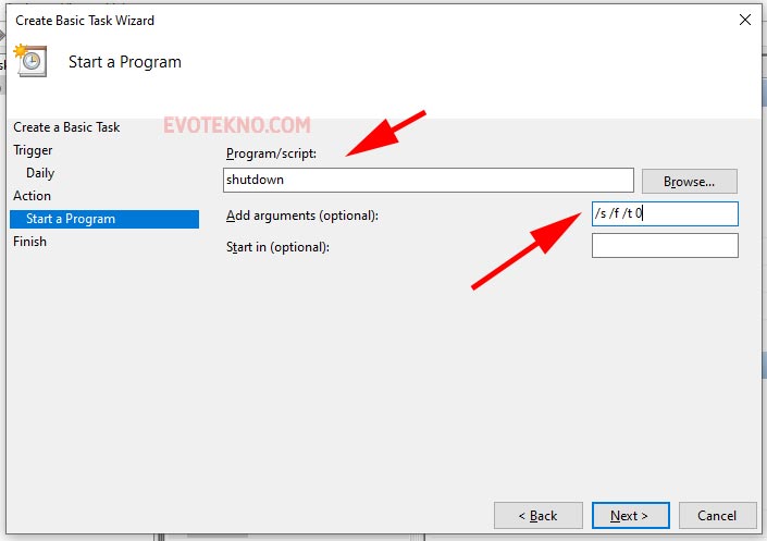 - Bagian start a program, masukan perintah: