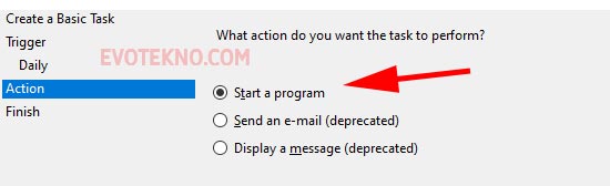 - Action, pilih “Start a program“
