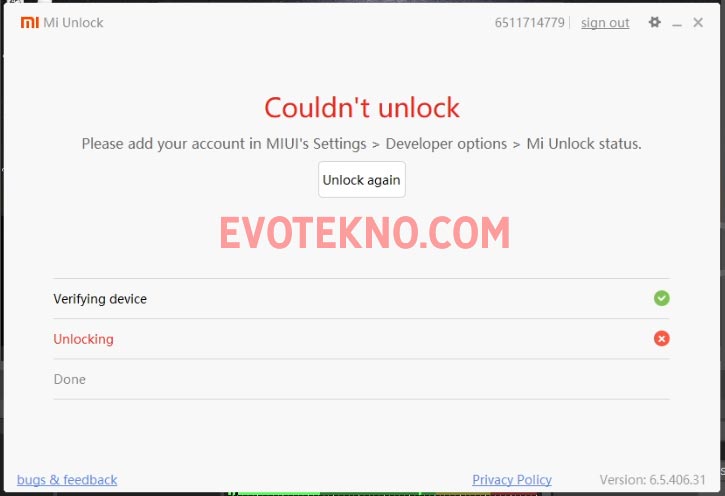 Mungkin Anda merencanakan untuk batal, walaupun sudah request UBL dan belum klik “Unlock” pada aplikasi Mi Unlock yang ada di PC.