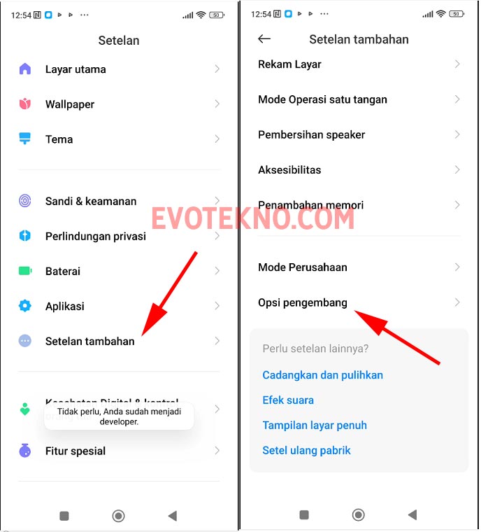 - Jika tak ada opsi pengembang, Anda harus mengaktifkan dulu, bisa cek pada tutorial versi video.