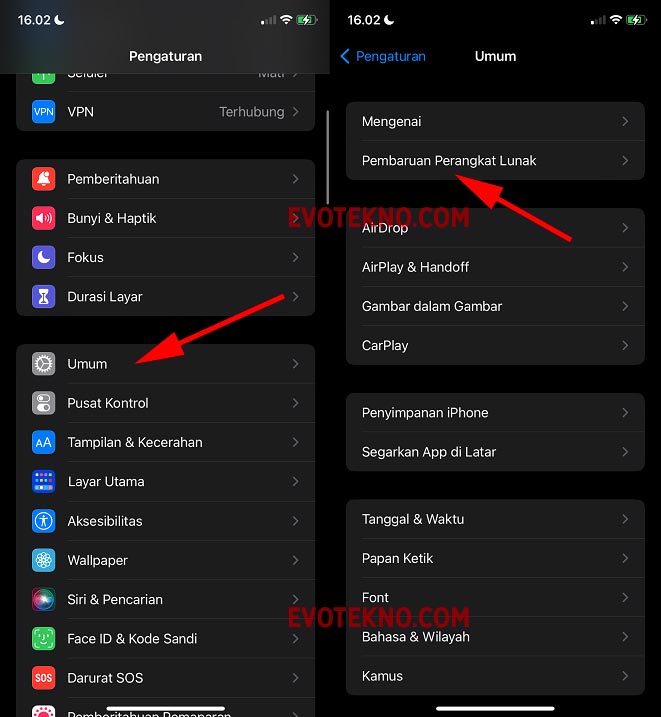 - Lalu buka menu “Umum” (General), setelah itu pilih “Pembaruan Perangkat Lunak” (Software Update).
