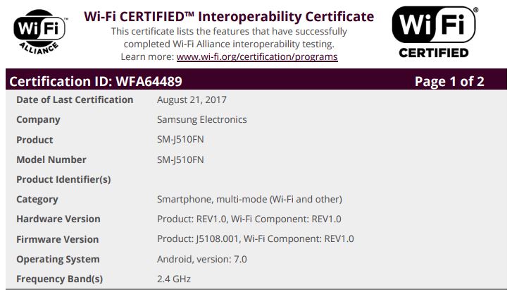 Sammobile pun menyatakan Samsung Galaxy J5 (2016) juga akan segera mendapatkan pembaruan sistem operasi, dan bulan lalu juga WiFi Alliance sebagai sertifikasi WiFi telah memberi petunjuk untuk smartphone ini.