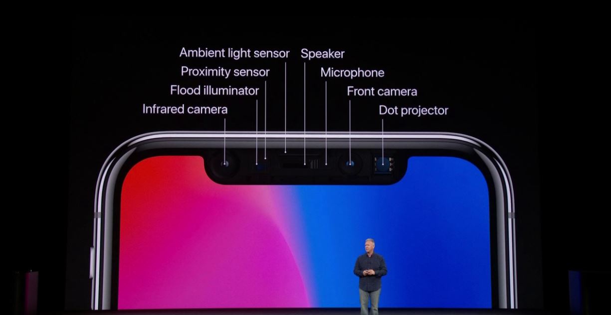 Touch ID atau sensor fingerprint yang biasanya ada pada smartphone Apple kini telah ditiadakan dan diganti dengan Face ID, seperti namanya membuka kunci menggunakan wajah, pemindai wajah yang ada di iPhone X berbeda dari yang lain dan malah lebih baik karena pada bagian depan layar dibekali banyak sensor didalamnya seperti Kamera 7MP True Depth, Infrared kamera, Flood illuminator, Dot projector membuat sensor wajah tersebut menjadi lebih akurat walau dikeadaan minim cahaya.