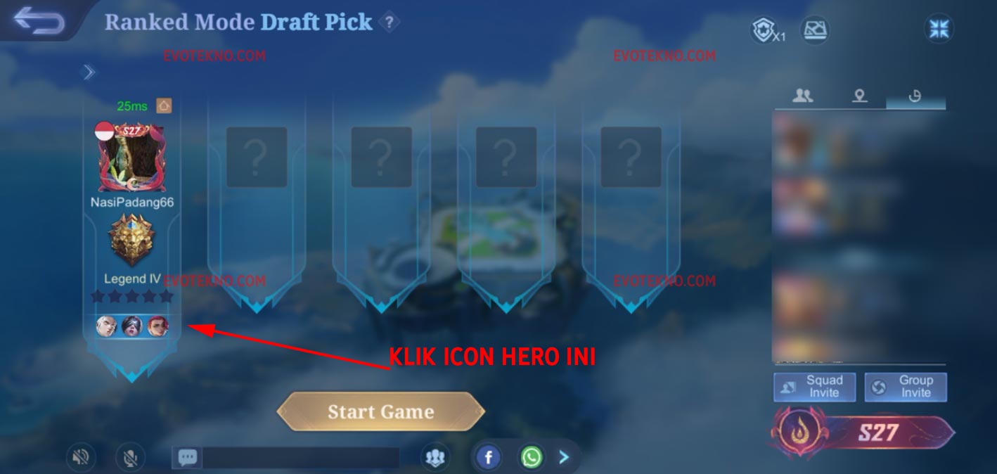 - Lalu pada bagian draft, jangan dimulai, tapi klik icon hero.