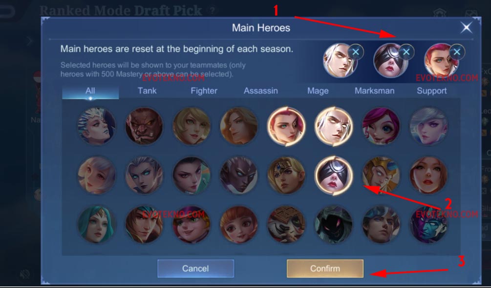 - Terakhir tinggal pilih hero-hero yang Anda sukai.