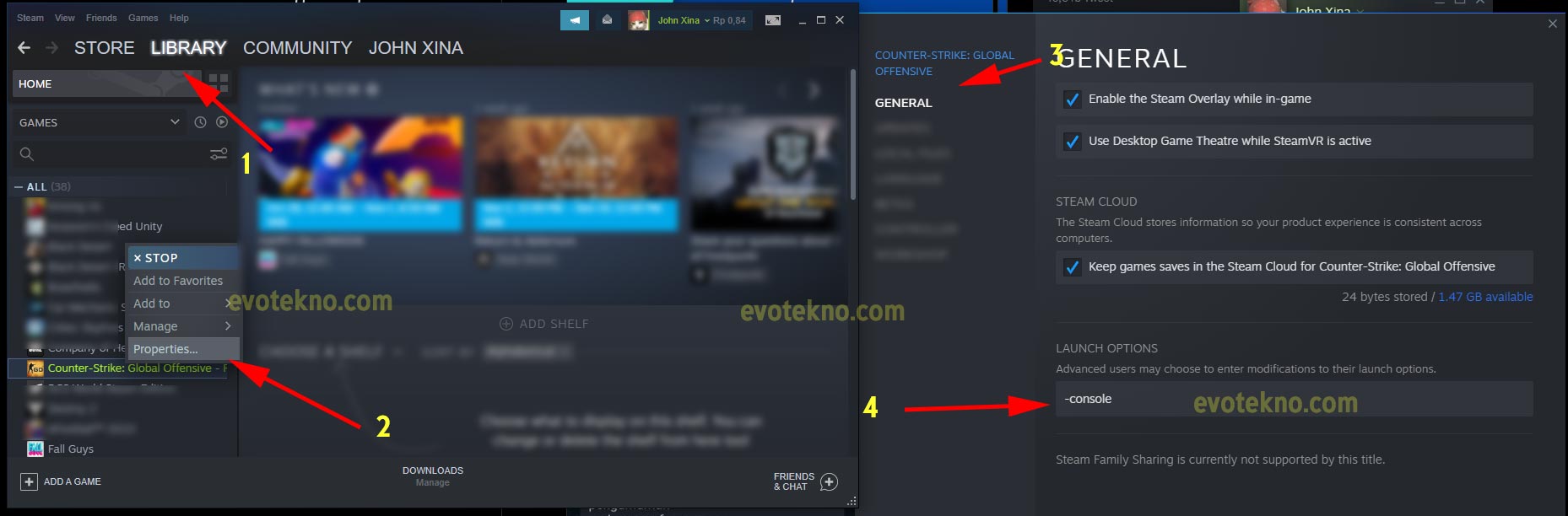 - Pada game Counter Strike: Global Offensive klik kanan dan pilih “Properties“