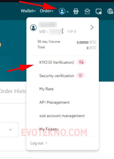 - Login dengan akun yang Anda daftarkan tadi, kemudian klik ikon profil, lalu klik “KYC“