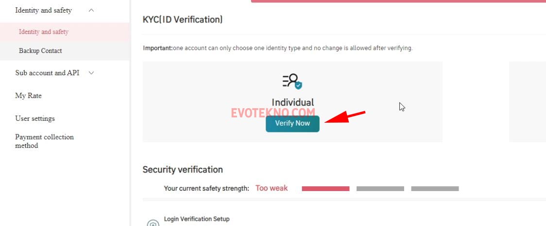 Anda bisa lihat pada bagian laman Identity and safety, jika berhasil nantinya akan tertulis KYC Succed!.