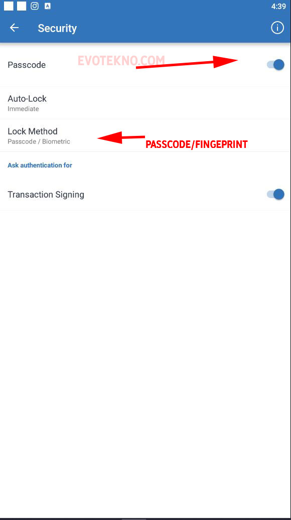 3. Lalu aktifkan “PasscodeSecurity - Passcode - Trust Wallet