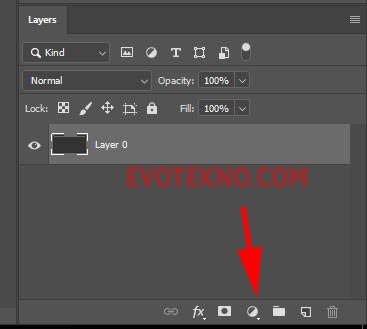 - Pada bagian jendela Layer, klik icon Adjustment Layer seperti pada gambar di bawah