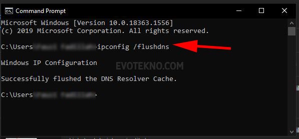 - Nah setelah command prompt terbuka, masukan perintah: ipconfig /flushdns