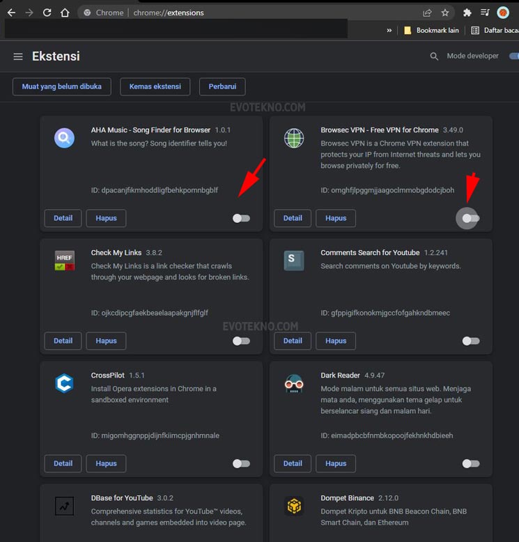 - Tak pelu menghapus, tugas Anda adalah menonaktifkan semua ekstensi yang terpasang.