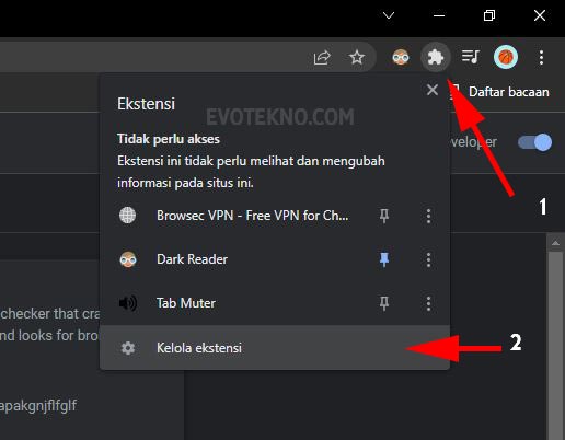 - Pertama klik ikon Ekstensi, lalu klik “Kelola Ekstensi”