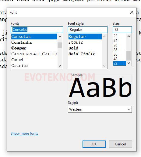 - Pada pengaturan ini, Anda bisa mengubah sytle, jenis font dan juga ukuran.
